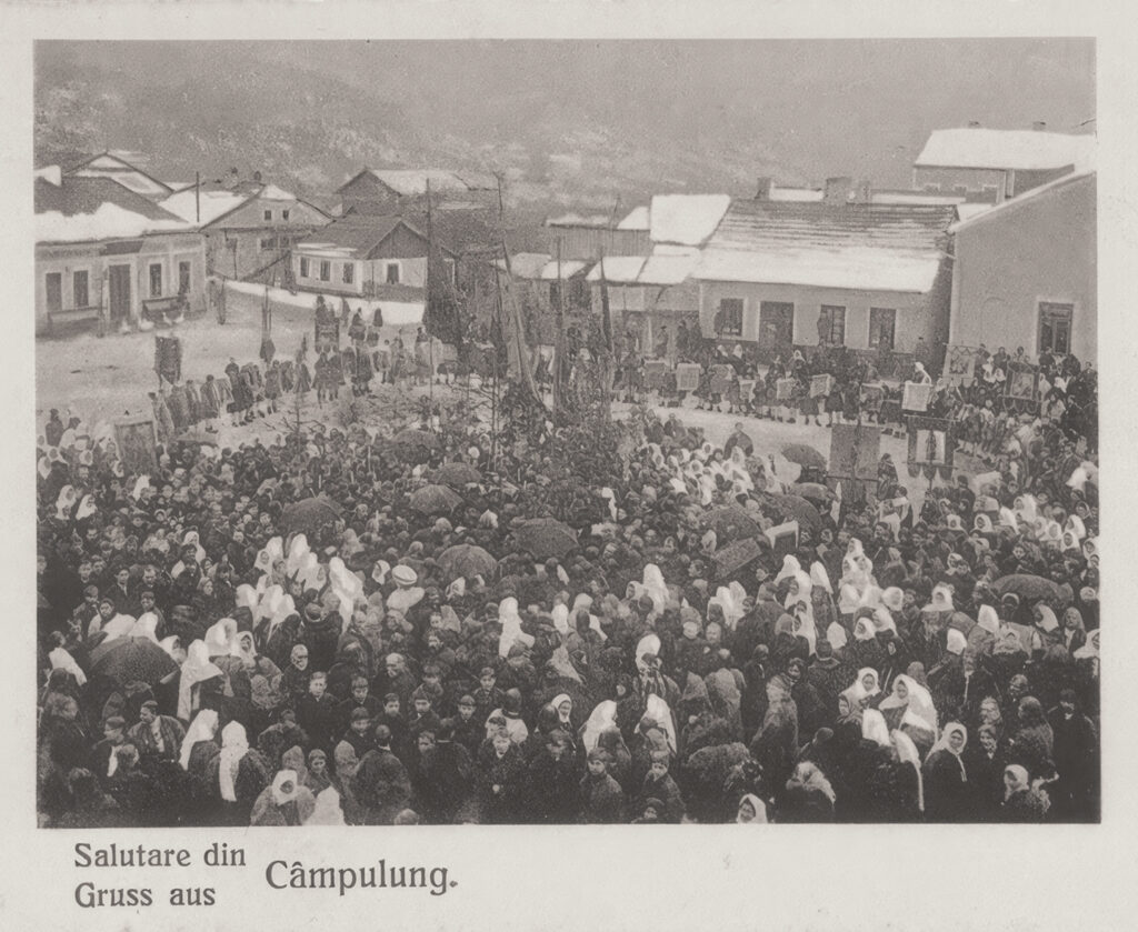 Slujba de Bobotează, la început de secol XX, în centrul Câmpulungului.