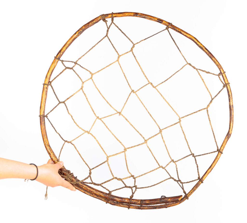 Un sistem de frânghii împletite prinse de un cerc din lemn de alun, folosit la scursul cașului.