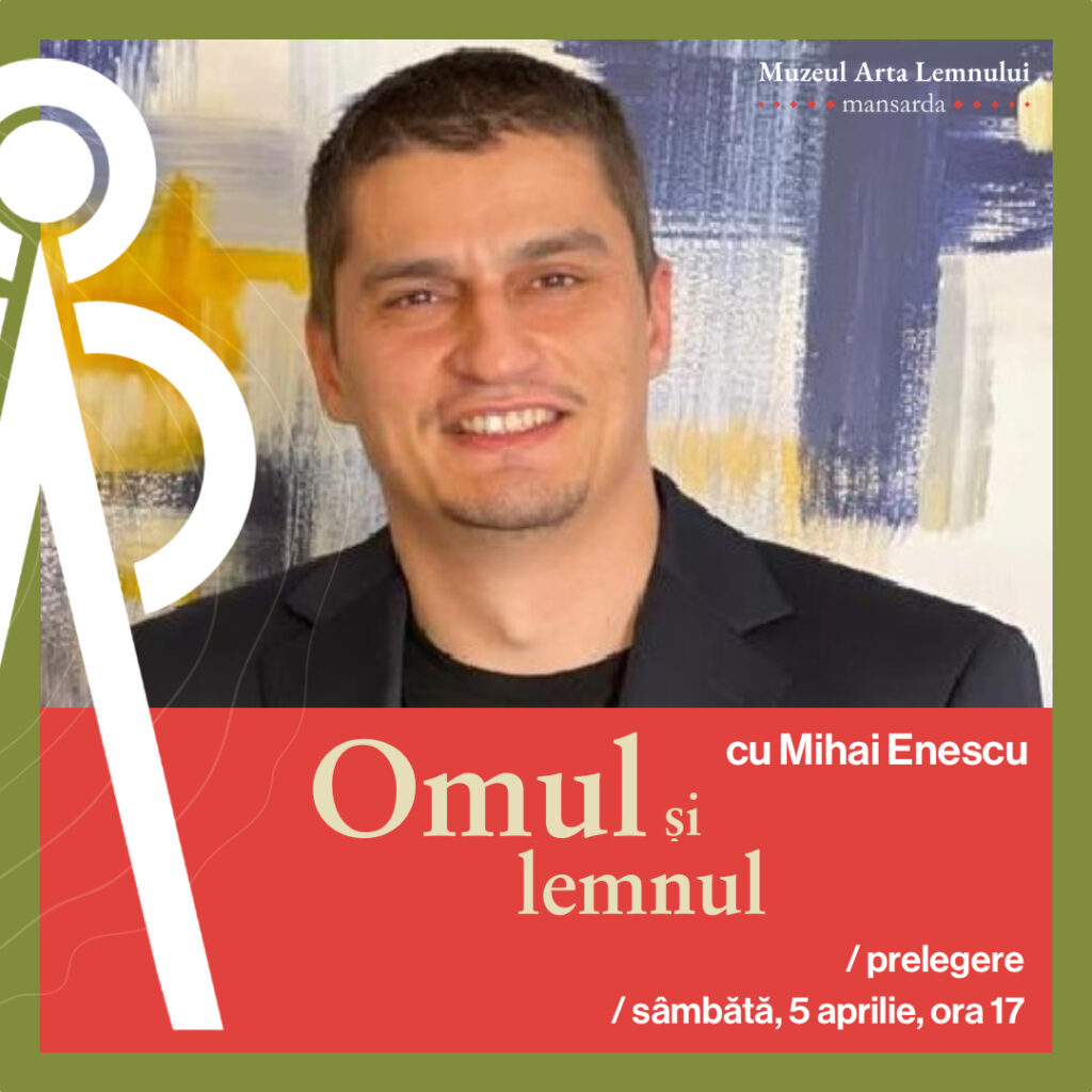 Mihai Enescu – doctor inginer în silvicultură, lector la USAMV București și susținător al inițiativei naționale „Plantăm fapte bune în România“, unul dintre cei mai pasionați specialişti din domeniul ecologic vine sâmbătă, 5 aprilie, de la ora 17, la mansarda Muzeul Arta Lemnului, pentru o prelegere cu titlul “OMUL și LEMNUL – o relație de-o viață”.