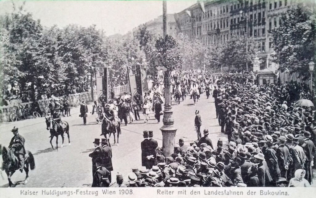 Călăreți cu steagurile Bucovinei la manifestările jubiliare de la Viena, 1908