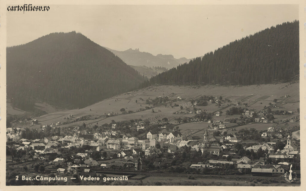 Vedere generală asupra orașului, cu Pietrele Doamnei în plan îndepărtat.