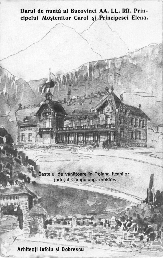 Darul de nuntă al Bucovinei AA.LL.RR Principelui Moștenitor Carol și Principesei sale Elena, Castelul de vânătoare din Poiana Ițcanilor, județul Câmpulung Moldovenesc.