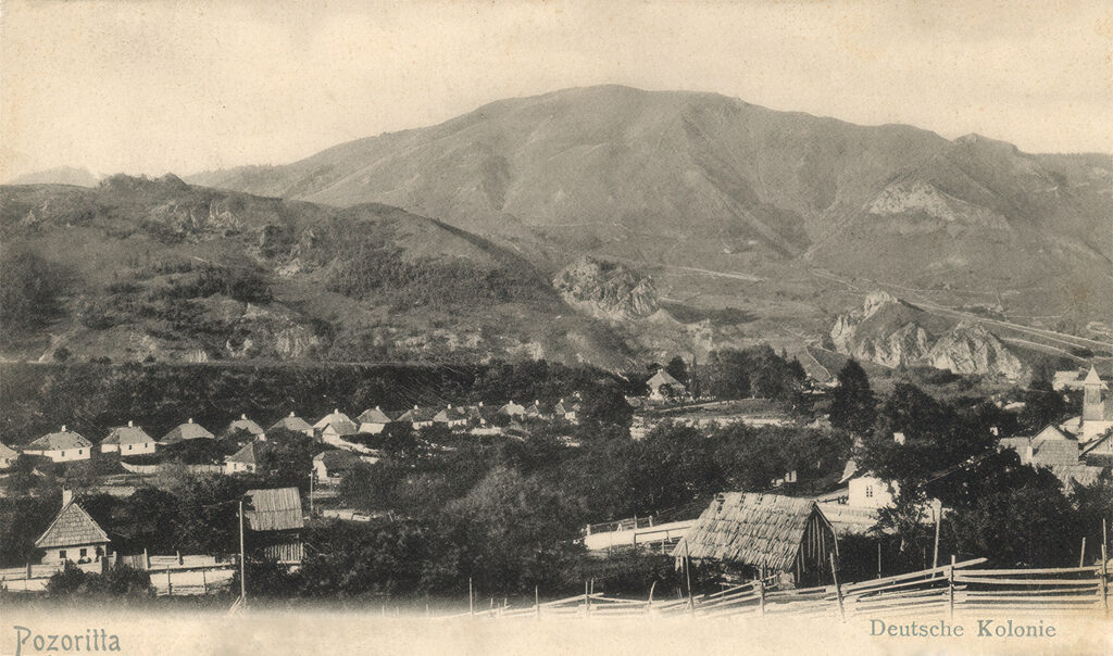 Zona locuită de coloniști în Pojorâta, cu case gemene, de la Ocolul silvic către Valea Putnei.