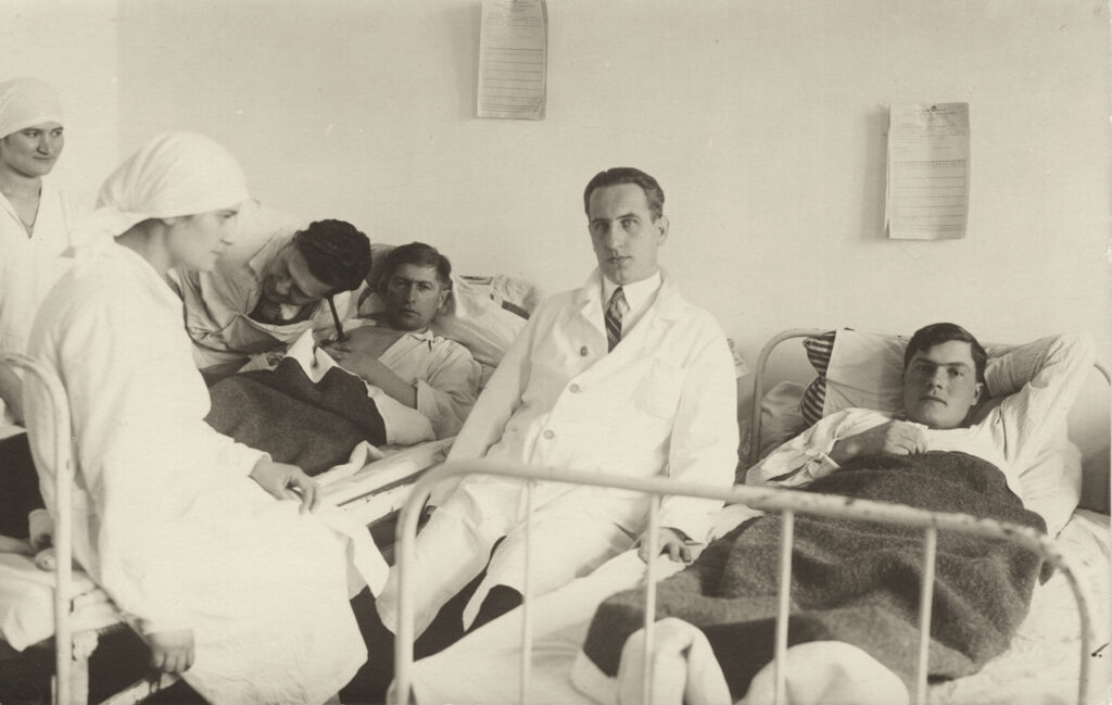 Doctorul Mircea Sireteanu, directorul Spitalului Orășenesc, împreună cu colegii, între pacienții săi.