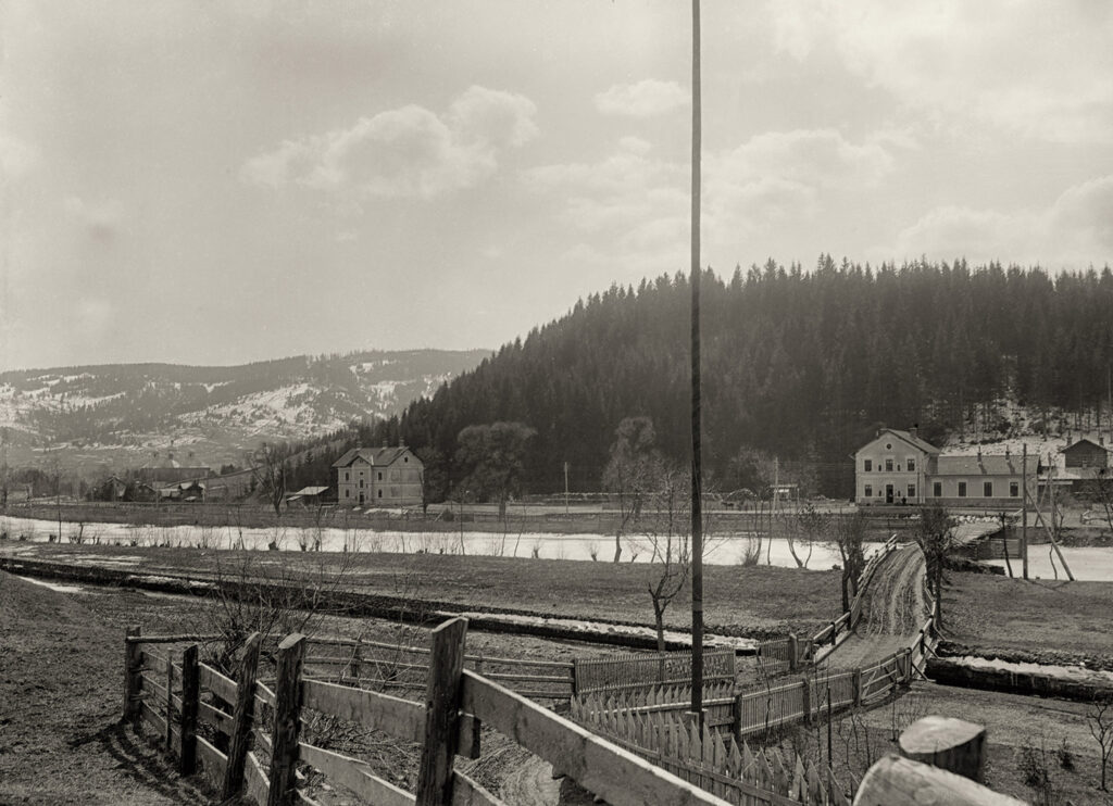 Gara Dorna Watra, văzută de peste Podul Verde, la început de secol XX