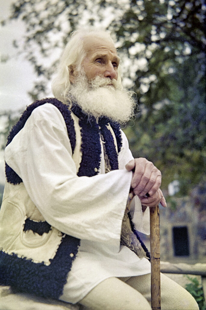 Gheorghe Mîndrilă, unul din bătrânii emblematici ai Bucovinei, la baza “Judecății de apoi” – celebra frescă de pe peretele mănăstirii Voroneț