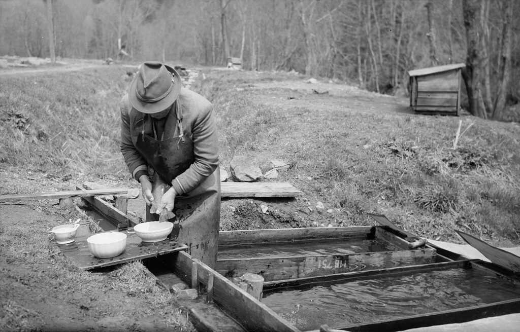 Păstrăvar, la “muls” (recoltarea materialului reproducător). Păstrăvăria Valea Putnei. Autorul fotografiei: Ferdinand Michitovici