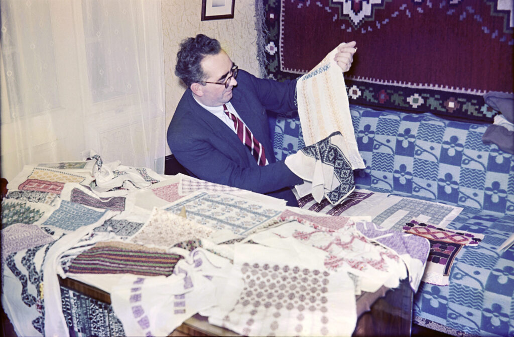 Distinsul profesor Grațian Jucan, dascălul multor generații de liceeni din Câmpulung Moldovenesc, admirând colecția de altițe.