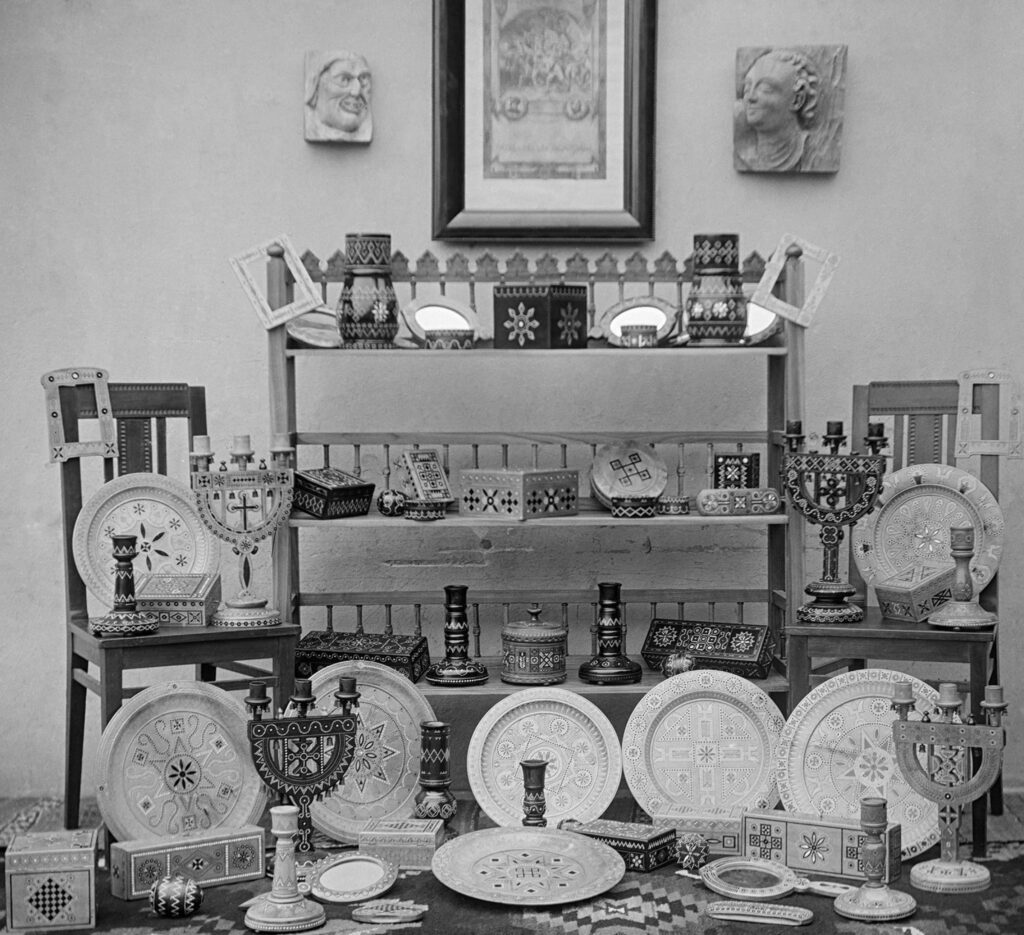 Produse realizate de absolvenții Școlii de Arte și Meserii, fotografiate în expoziția proprie.