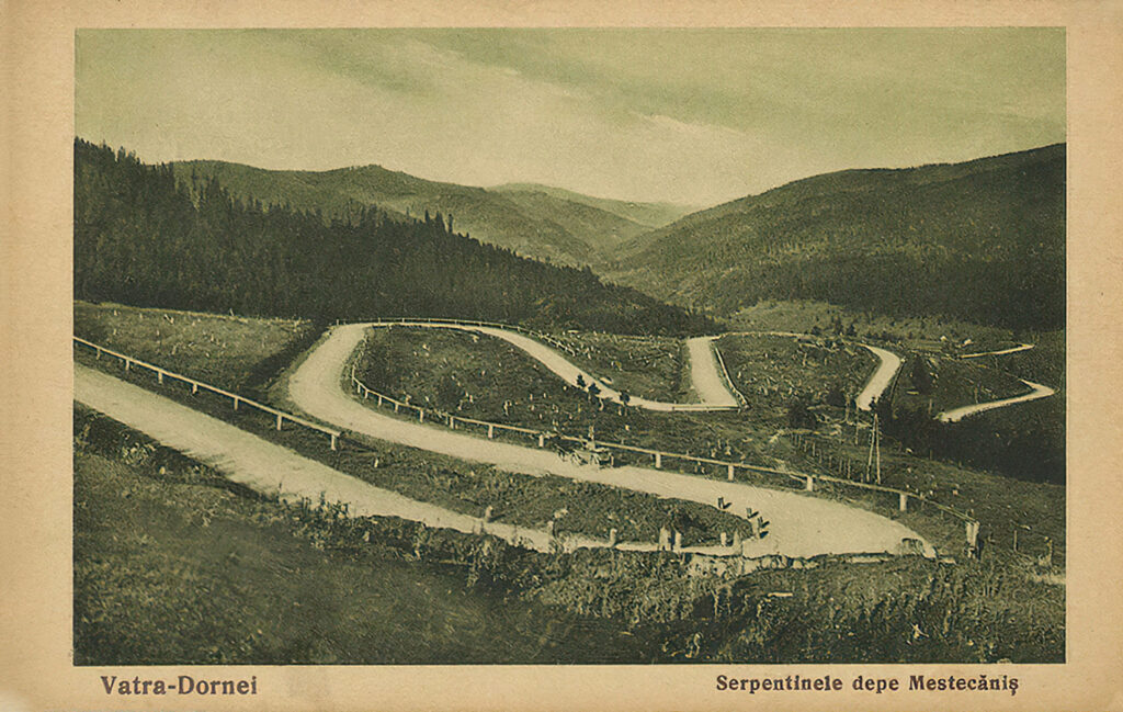 Serpentinele drumului vechi de pe Mestecăniș, la începutul secolului trecut